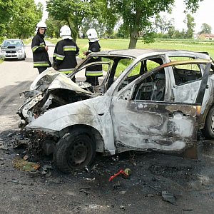 Pojazd mieszkanki gminy Kocierzew całkowicie spłonął, mimo podjętej próby jego ratowania przez kierowców a potem strażaków z Państwowej Straży Pożarnej i ochotników z Boczek Chełmońskich. Szosa do Kocierzewa jest obecnie nieprzejezdna.