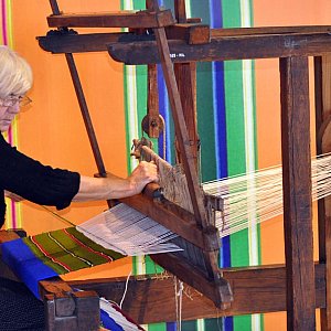 Po występie można było natomiast obejrzeć pokaz tkania na zabytkowym, będącym eksponatem łowickiego muzeum, warsztacie tkackim.