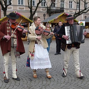 Pisanki, kurczaczki, baranki z Zielkowic, miody z Łowicza, misternie zdobione pierniczki z Krosna, wyroby z drewna, wybór haftów, łowicka ceramika czy domowe wędliny oraz chleb na zakwasie, do których kolejka nie ustawała przez cały dzisiejszy dzień, to tylko niektóre atrakcje Wielkanocnego Kiermaszu. Dziś i jutro również strefa zabaw dla dzieci z darmowymi dmuchanymi zabawkami. Dziś odbyły się warsztaty z wyplatania wianków świątecznych, jutro będzie można wykonać wielkanocną palmę i kartki świąteczne. Na pisance XL, która zostanie na Starym Rynku o końca kiermaszu, każdy mógł podpisać się z pomocą pędzla i kolorowych farb. Przygrywała nie tylko góralska kapela. Jest również wielkanocne karaoke ze słodkimi nagrodami. Maskotką kiermaszu jest wielkanocny zając, z którym najmłodsi chętnie robią sobie zdjęcia.