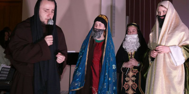 Za przygotowaniem przedstawienia stał wikariusz ks. Jacek Zieliński, jak nam powiedział scenariusz opracował sam, posługując się głównie ewangelią św. Jana.