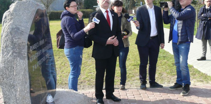 Przypomnijmy, że na pomniku znajduje się napis "Pamięci ofiar katastrofy smoleńskiej z 10 kwietnia 2010 roku, Mieszkańcy Łowicza" i data "Łowicz 10 kwietnia 2018 r.".