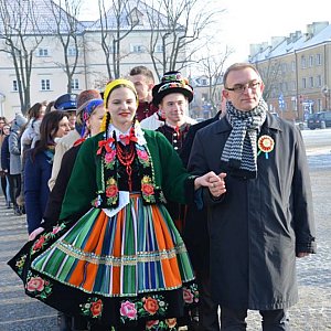 Około 120 maturzystów wysłuchało krótkiego wystąpienia starosty Marcina Kosiorka, który zaproponował, aby do inicjatywy tańczenia poloneza w tym samym czasie na głównych rynkach dołączyła młodzież z miast partnerskich Łowicza. Bo - przypomnijmy - jest to wspólna inicjatywa powiatów łowickiego, kartuskiego, zakopiańskiego i świdnickiego.