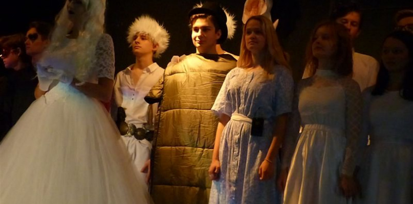 Oprawę muzyczną stworzyła szkolna schola pod kierunkiem Natalii Kędziory. Duże wrażenie robiła scenografia, nawiązująca do prozy Carrolla.