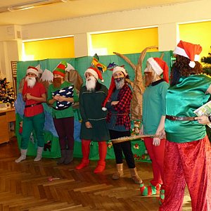 Po przedstawieniu dzieci odwiedził Mikołaj, który wręczył prezenty najpierw rodzicom, a potem dzieciom.