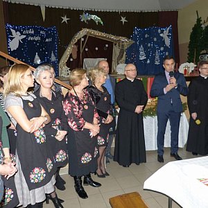 Po odczytaniu opowiadającej o tym wydarzeniu ewangelii według św. Łukasza, zebrani podzielili się opłatkiem, obejrzeli jasełka przygotowane przez dzieci 5 i 6-letnie z Przedszkola Integracyjnego Jaś i Małgosia przy ul. Chełmońskiego, po czym przystąpili do posiłku.