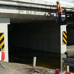 Całą rzekę przekopią ? Żeby woda przepływała cały kanał musi być równy. Kopanie pod mostem zmniejszy prędkość strumień przepływu, woda będzie się zbierała i rozlewała. Za wiaduktem w dolnym biegu kopać, wtedy spłynie, spod wiaduktu przynajmniej .