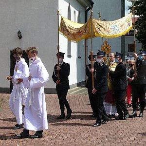 Na prośbę parafii wśród uczestników uroczystości były osoby ubrane w księżackie wełniaki oraz poczty sztandarowe Ochotniczych Straży Pożarnych.