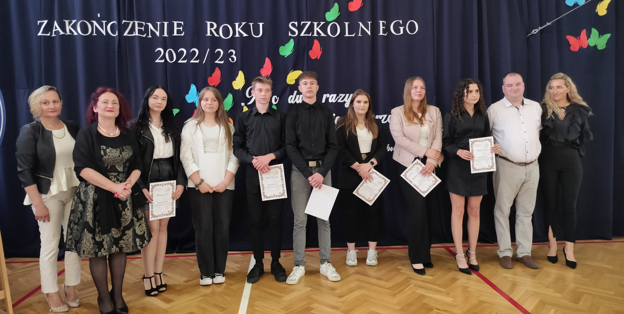 Rozdano także nagrody za: 12. miejsce w Ogólnopolskiej Olimpiadzie Przedmiotowej z Geografii OLIMPUS; za najwyższy wynik w szkole w Ogólnopolskim Konkursie Geograficznym; za zajęcie II miejsca w Szkolnym Konkursie Języka Angielskiego; za udział w wojewódzkim etapie Ogólnopolskiej Olimpiady ZUS ,,Warto wiedzieć więcej o ubezpieczeniach społecznych”; udział w Szkolnym Konkursie Języka Niemieckiego; udział w Szkolnym Konkursie „Mistrz Ortografii”; udział w Szkolnym Konkursie „Palety EPAL i ich zastosowanie w praktyce”; udział w Szkolnym Konkursie „Mistrz savoir-vivre”; za aktywną pracę na rzecz społeczności szkolnej; za bardzo aktywny udział w działaniach biblioteki szkolnej; za pracę w szkolnych social mediach (TikTok).