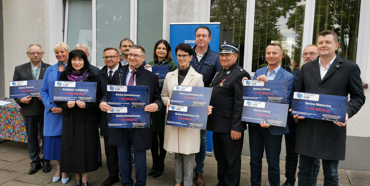 Beneficjentami rządowego programu Polski Ład są samorządy z powiatu łowickiego. Symboliczne czeki odebrali burmistrz Łowicza, wójtowie gmin i przedstawiciele jednostek podległych samorządowi powiatu łowickiego.