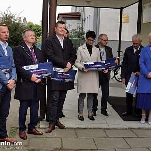 W poniedziałek, 9 października, przed Zespołem Szkół Ponadpodstawowych nr 3 w Łowiczu odbyła się konferencja prasowa poświęcona dofinansowaniom przyznanym w ramach rządowego programu Polski Ład.