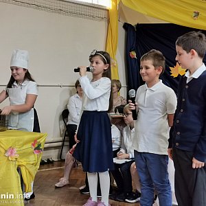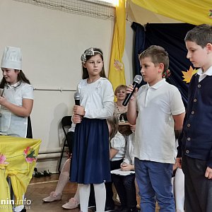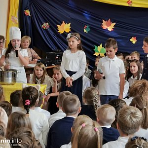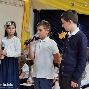 Szkoła jest duża, liczy blisko 550 uczniów, dlatego uroczystość została podzielona na dwie tury. Pierwsze cześć akademii odbyła się o godzinie 9.50. Pouczające przedstawienie, nie pozbawione humoru zaprezentowali uczniowie klas trzecich pod kierunkiem nauczycielek Róży Juszczak-Terebińskiej, Justyny Kocemby, Iwony Nierobisz i Anety Jezierskiej.