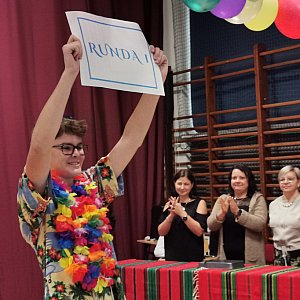 Rywalizacja przebiega na wesoło. Zadaniem drużyn było m.in. odgadywanie „kto pierwszy, ten lepszy” nazwisk nauczycieli na podstawie wyświetlanych obrazków. Dużo śmiechu dostarczyła wszystkim konkurencja pod nazwą „głuchy telefon”, w której członkowie drużyn przekazywali sobie pewną historię tylko przy pomocy ruchu warg, ponieważ mieli słuchawki na uszach.