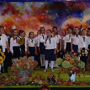 Były życzenia dla nauczycieli, podziękowania od rodziców. a także występ uczniów klas trzecich - oczywiście na temat nauczycieli.