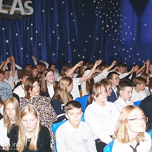 Na scenie była dekoracja jesienna, ale sala gimnastyczna miała wystrój kosmiczny. Był on wykonany na bal klas ósmych według pomysłu i koncepcji nauczyciela "Dwójki" Wojciecha Kutkowskiego.