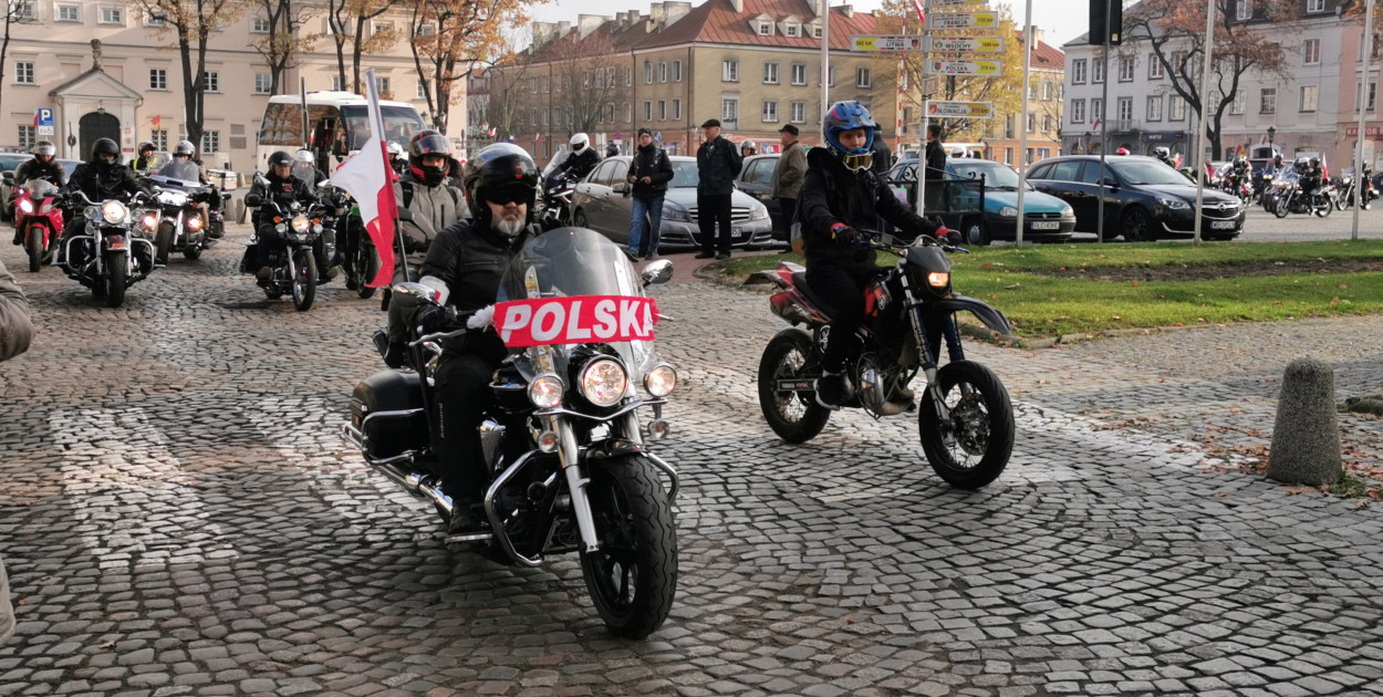 Motocyklisci zadbali, by podczas parady widoczne były biało-czerwone flagi.