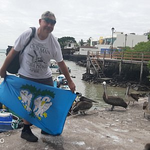 Podobnie jak na swoją poprzednią wyprawę na Spitsbergen, Jarosław Czapla zabrał na Galapagos flagę z herbem Łowicza, przedstawiającą dwa pelikany. Pozwoliło to zrobić ciekawe zdjęcia z prawdziwymi pelikanami, których widok na Glapagos nikogo nie dziwi.