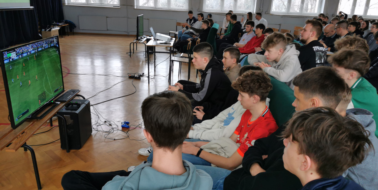 W szkolnej auli odbywają się rozgrywki w FC 24, która jest grą o tematyce futbolowej. Bierze w nich udział 32 zawodników, ale e-Turniej wzbudza emocje także wśród pozostałych uczniów, którzy śledzą go w charakterze kibiców. - Rywalizacja jest zacięta, ale przyjazna - skomentował Bogumił Lewandowski, uczeń piątej klasy technikum. Z kolei jedno kolega docenił, że Mikołajkowy turniej nie przepadł z powodu próbnych matur. - To jest chyba najbardziej trafiony pomysł, jeśli chodzi o rozrywkę w tej szkole, bo wybrana została na tyle popularna gra, że nawet dziewczyny potrafią w nią grać, a dla chłopaków, to jest czysta rozrywka - ocenił Krystian Tomaszkiewicz.