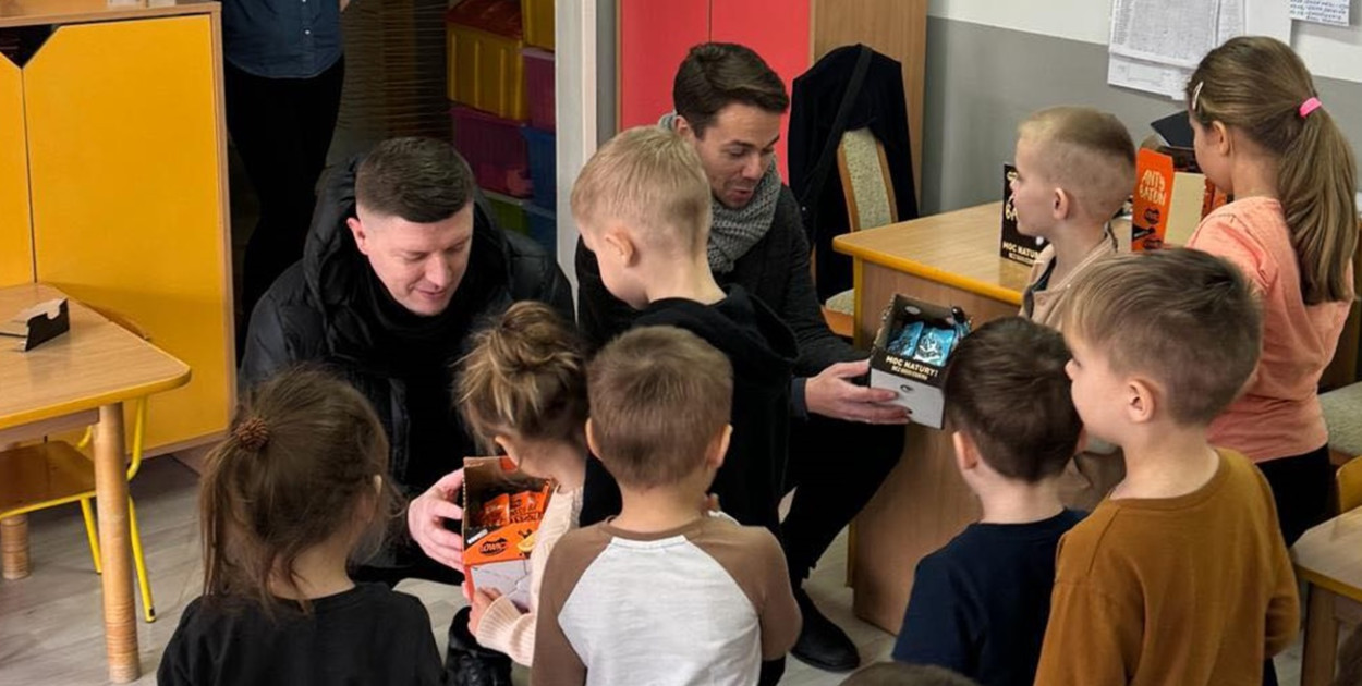 Dlatego dzisiaj z samego rana przedstawiciele Łączy nas Łowicz Krystian Cipiński, Sebastian Popiel, Katarzyna Szkup, Szymek Szaleniec i Kamil Szkup wybrali się do łowickich przedszkoli i żłobków, by rozdać naturalne, owocowe musy.