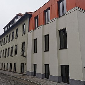 Rozbudowę rozpoczęto, przypomnijmy, późną wiosną minionego roku. Nie jest ona wielka: nowa część dodaje szkole po jednej sali lekcyjnej na każdym z trzech poziomów - ale kluczowa, bo umożliwia nabór do dwóch klas szkoły podstawowej równocześnie.