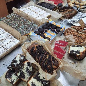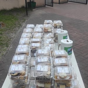 Iza Kołosowska powiedziała nam, że osoby organizujące kiermasz chciały dać „coś od siebie”, a nie tylko zbierać pieniądze do puszek. Stąd pomysł, by był to kiermasz ciast. Zaangażowanie w jego organizację przerosło jednak wszelkie oczekiwania. W sobotę do sali OSP Sierakowice Prawe, gdzie był magazyn, przywiezionych zostało około 80 blach z ciastami. Poza tym było całe mnóstwo innych wypieków, tj. szyszki, muffiny i babeczki. Wszystkie wypieki zostały poporcjowane, dzięki czemu powstało ok. 550 paczek z pysznym ciastem.
