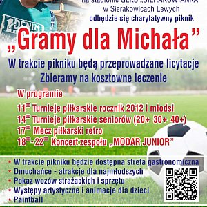 Bliscy Michała dalej mobilizują się, by mu pomóc. Już 3 maja na stadionie GLKS „Sierakowianka” w Sierakowicach Lewych odbędzie piknik charytatywny „Gramy dla Michała”. Między godziną 18 a 22 uczestników bawić będzie lokalny zespół Modar Junior.