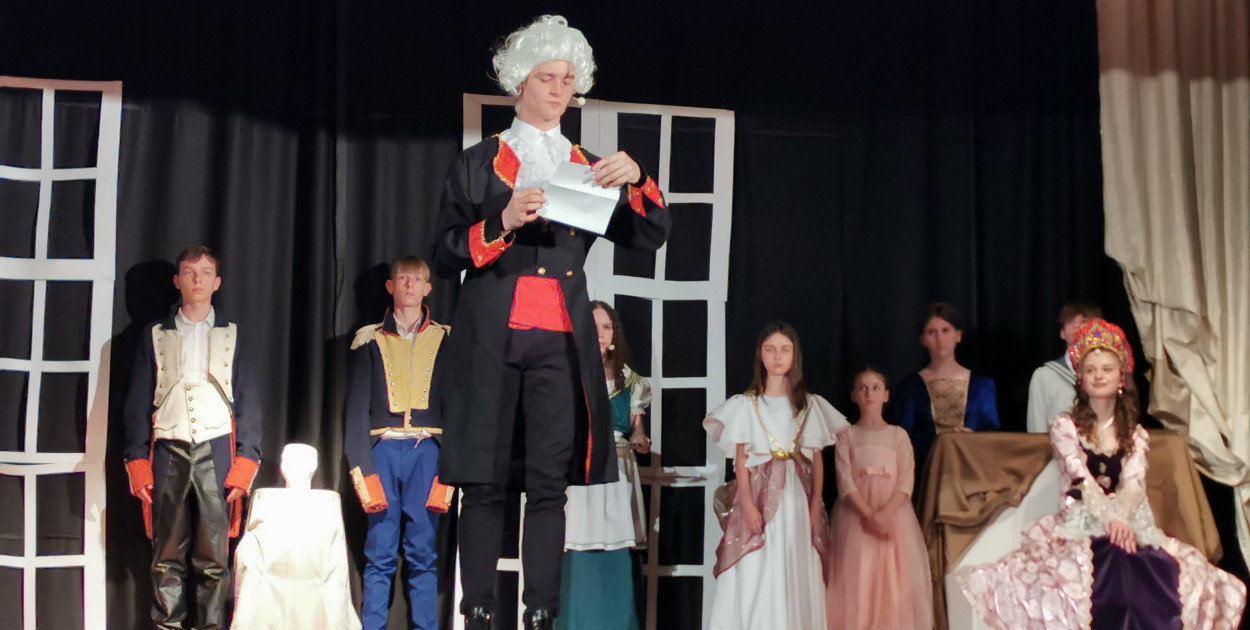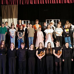 W przedstawieniu wystąpili uczniowie klas: 2 liceum, a także 7, 6 i 4 klasy szkoły podstawowej. Dla tych ostatnich był to debiut sceniczny.