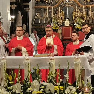 O godzinie 18.00 rozpoczęła się msza święta w Bazylice Katedralnej Wniebowzięcia Najświętszej Maryi Panny i św. Mikołaja w Łowiczu, podczas której mało miejsce uroczyste wprowadzenie relikwii Świętego Jana Pawła II, które zostały przywiezione z Krakowa kilka dni temu w pozłacanym relikwiarzu.