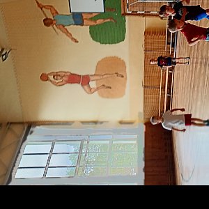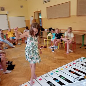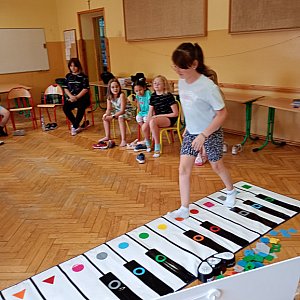 Każdy spędza czas z uśmiechem na twarzy. Wczoraj najmłodsi mieli zajęcia sportowe, a dzisiaj obchodzili Dzień Ufoludka, podczas którego mieli konkurs, memory, kolorowanki, uczyli się piosenek. Oprócz tego w podziale na grupy dzieci miały zajęcia muzyczne na KolorPiano, gdzie zagrali nawet „Wlazł kotek na płotek” (zobacz w filmiku poniżej), a część grupy spędzała czas na zajęciach ruchowych – m.in. grali w piłkę nożną, siatkówkę, koszykówkę, mieli przygotowane tunele, linę do huśtania.