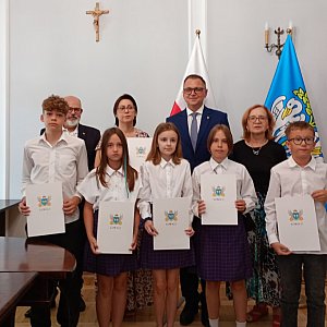 Stypendia dla uczniów z miasta Łowicza zostały wręczone przez burmistrza miasta Mariusza Siewierę - o 9.00 klasy IV-VI i o 10.00 klasy VII-VIII. Uzyskali je uczniowie Szkoły Podstawowej nr 1 im Tadeusza Kościuszki, Szkoły Podstawowej nr 2 im. Adama Mickiewicza, Szkoły Podstawowej nr 3 im. Władysława Stanisława Reymonta, Szkoły Podstawowej nr 4 im. Marii Konopnickiej, Szkoły Podstawowej nr 7 im. Jana Pawła II z Oddziałami Integracyjnymi i Pijarskiej Szkoły Królowej Pokoju.