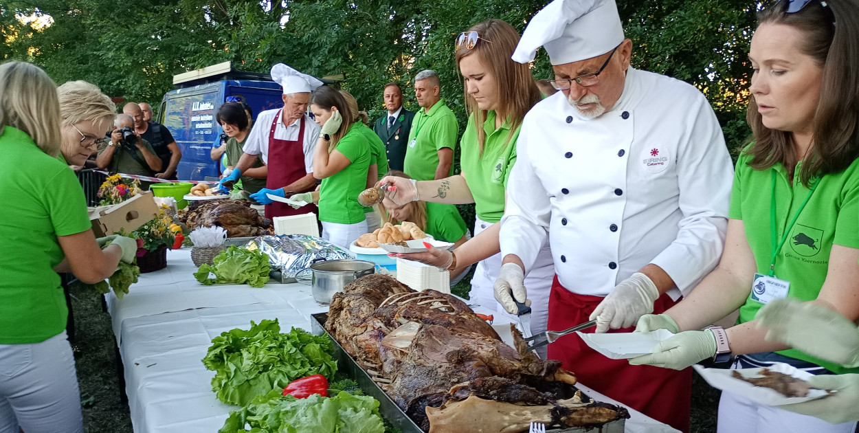 Skoro Dzień Kiernozkiego Dzika to nie mogło oczywiście zabraknąć konsumpcji pieczonych dzików upolowanych przez myśliwych z Koła Łowickiego "Orzeł" z Kiernozi. Chętnych na spróbowanie pieczonego dzika było nieskończenie wielu.