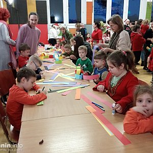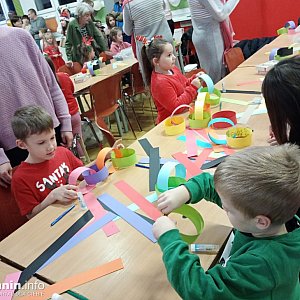 Program jak zawsze był bardzo bogaty. Na najmłodszych czekała wspaniała zabawa i tańce wraz z animatorem. Było także stanowisko z kolorowymi warkoczykami, które przyciągały szczególnie dziewczynki. Dzieci spędzały również dużo czasu przy stole, z najróżniejszymi kolorowymi artykułami, gdzie mogły stworzyć swój własny łańcuch na choinkę.