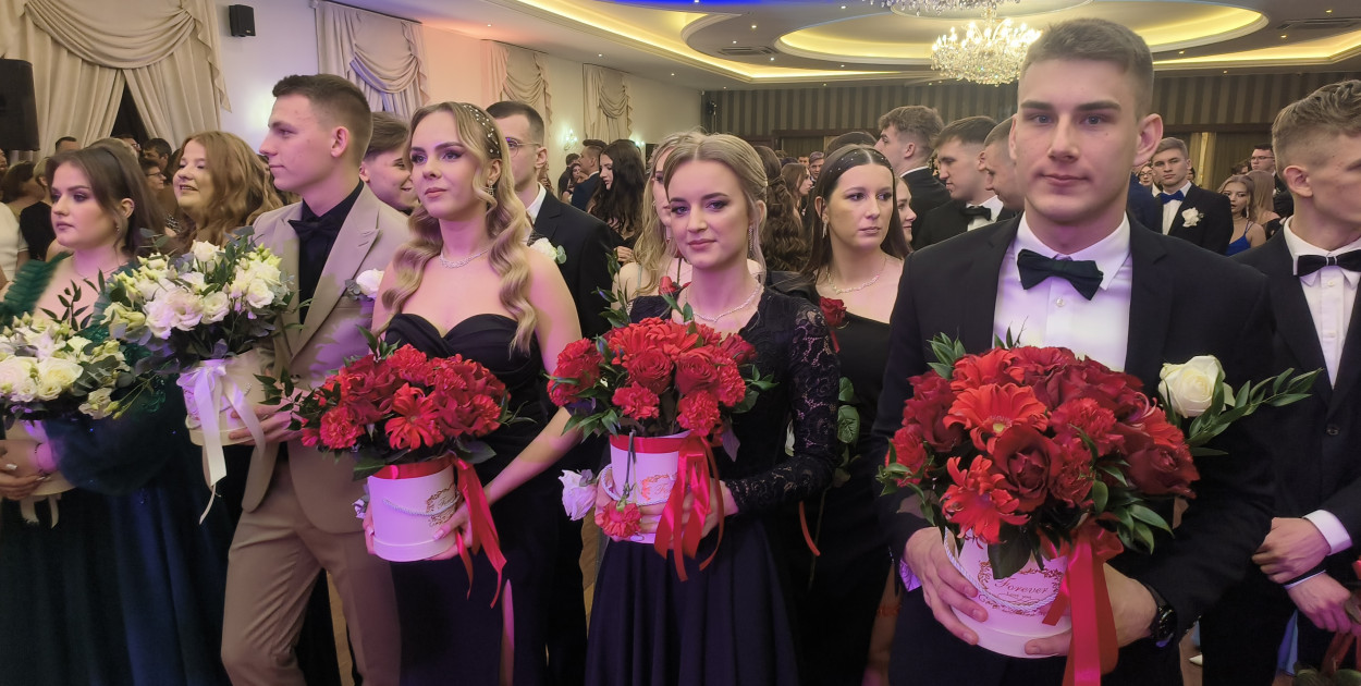 Młodzież, ubrana w odświętne stroje – dziewczęta w pięknych sukniach, z symbolicznymi czerwonymi podwiązkami mającymi przynieść im szczęście podczas zbliżających się matur, a chłopcy w eleganckich garniturach – prezentowała się wyjątkowo dostojnie.
