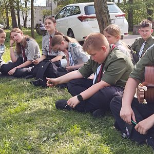 Dzisiaj w godzinach popołudniowych zuchy i harcerze z łowickiego hufca ZHP spotkali się przy pomniku harcerskim, znajdującym się przy pasażu Grabskiego. Oprócz tradycyjnych harcerskich śpiewów i pląsów, dokonali również podsumowania inicjatywy związanej z przypadającym dzisiaj Dniem Flagi.