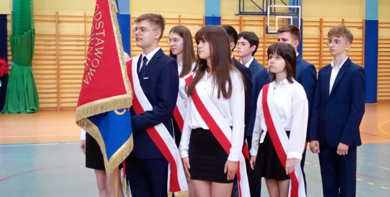 Kolejnym punktem programu było uroczyste przekazanie sztandaru – uczniowie klas ósmych, którzy żegnają mury szkoły, oddali go w ręce młodszych kolegów. Następnie wręczono dyplomy i nagrody dla wyróżniających się uczniów oraz ich rodziców. Ósmoklasiści odebrali swoje świadectwa na forum całej szkoły, po czym zatańczyli poloneza. Na zakończenie wszyscy uczniowie udali się do klas, aby odebrać swoje świadectwa i pożegnać się z wychowawcami.