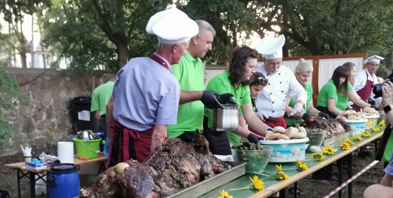 Kulminacyjny punkt dzisiejszego wieczoru, na który czekało wiele osób, miał miejsce o 19.30. Goście przybyli na teren Zespołu Pałacowo-Parkowego wzięli udział w degustacji trzech pieczonych dzików. Ponadto ogłoszono również wyniki konkursów, które zainicjowały tegoroczną odsłonę Dnia Kiernozkiego Dzika.