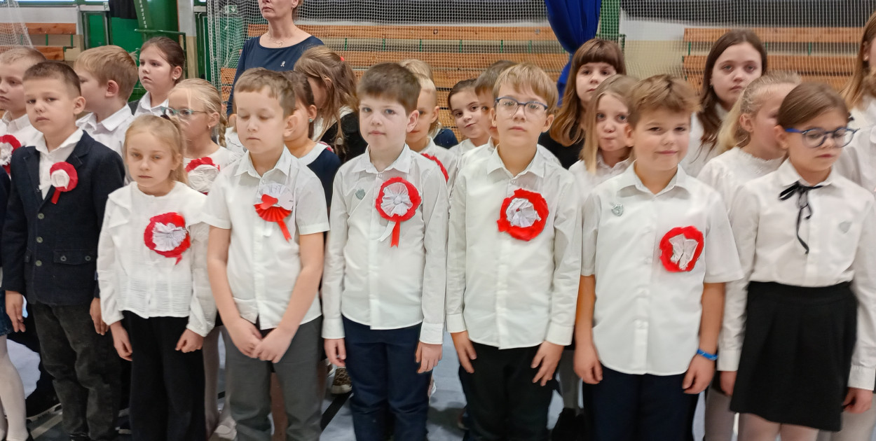 Społeczność szkolna zebrała się w hali nr 2 Ośrodka Sportu i Rekreacji w Łowiczu. Tam najpierw odśpiewano hymn państwowy "Mazurek Dąbrowskiego", a następnie dyrektor placówki Ewa Chudzyńska wręczyła nagrody laureatom szkolnego konkursu recytatorskiego o tematyce patriotycznej, który miał miejsce wczoraj, 6 listopada w czwartek.