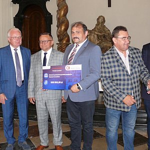 W sali barokowej Muzeum w Łowiczu grupa polityków PiS wręczyła dzisiaj, tj. 21 lipca symboliczne czeki - promesy na przyznaną dotację z Rządowego Programu Odbudowy Zabytków, który po raz pierwszy został wprowadzony.