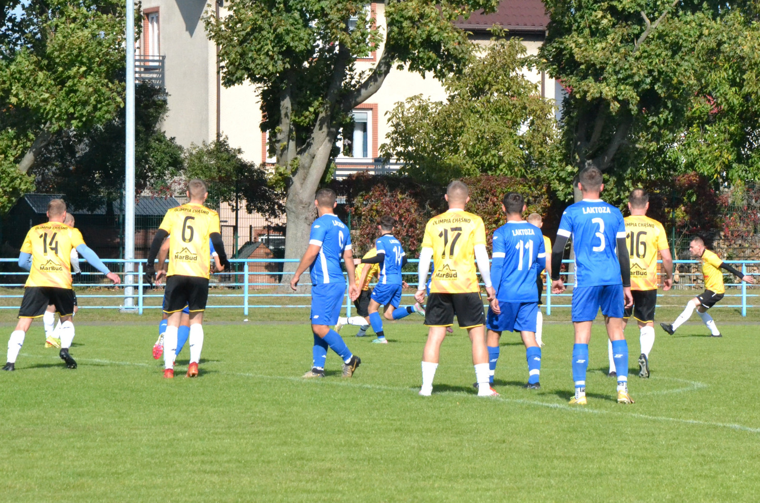 W Łyszkowicach miejscowa Laktoza 1955 podejmowała w sobotę, 4 października, Olimpię Chąśno. Mecz zakończył się wynikiem 3:4 (0:1), a obie drużyny zafundowały kibicom prawdziwy rollercoaster. Dla gości bramki zdobyli: Oktawian Andrzejczak, Marcin Matuszewski, Szymon Koza i Kamil Gać. Gospodarze odpowiedzieli trafieniami Piotra Jaworskiego, Bartłomieja Krupy i Antoniego Waśkiewicza.