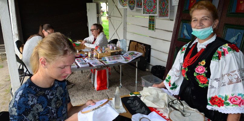 Hafciarka Teresa Jabłońska, wycinankarka Mirosława Grochocka i zajmująca się malowaniem przedmiotów użytkowych lub ozdobnych Barbara Frątczak - to twórczynie, które prowadzą dzisiejsze warsztaty ludowe w mini skansenie przy Muzeum w Łowiczu.