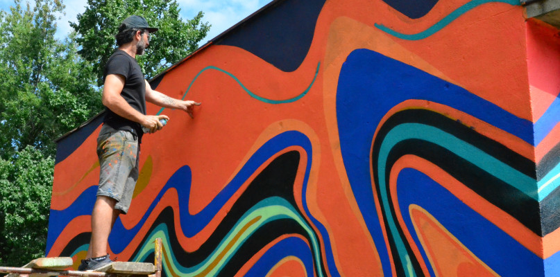 Posłuchajcie co nam powiedział o muralu, który właśnie tworzy.