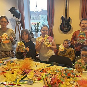 Na warsztatach dzieci uczyły się ozdabiać jajka wielkanocne w formie i wykonywały żółte żonkile z bibuły. Samodzielnie przygotowane ozdoby dzieci zabrały ze sobą, by upiększyć nimi domy na Święta Wielkanocne.