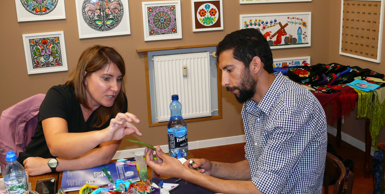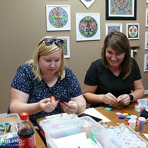 Odsiedzieliśmy Muzeum Wycinanek na Starym Rynku 1 lipca około godz. 14 i na warsztatach był komplet chętnych. Były osoby z Łowicza i okolic, Łodzi, a także Ukraińcy. Jedyny mężczyzna uczył się haftu koralikowego, młoda kobieta z Bełchowa, która zainteresowała się możliwością nauki haftu w szkole na ul. Ułańskiej, gdy dowiedziała się, że Agnieszka Sałuda ją skończyła.