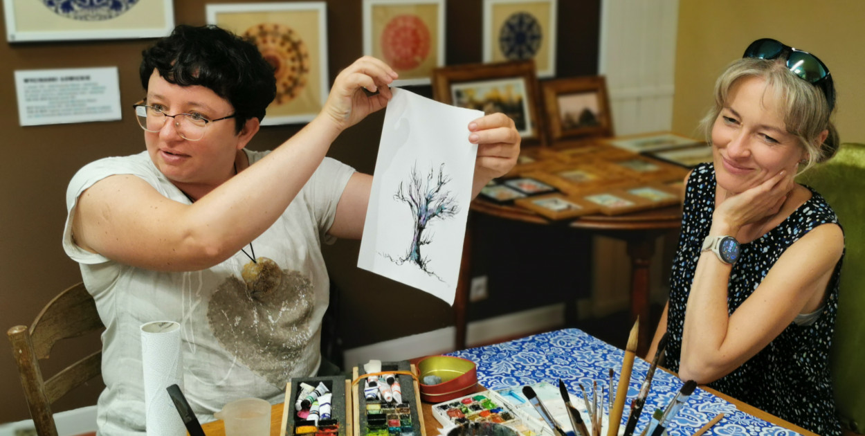 Zauważalne jest jednak, że wśród uczestników warsztatów są osoby bardzo utalentowane, które po krótkim instruktażu samodzielnie wykonują piękne prace. Mogą je zabrać na pamiątkę ze sobą.