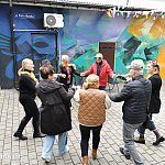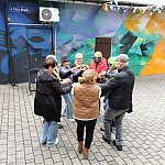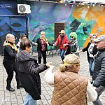 Potańcówka dla seniorów na dziedzińcu ŁOK