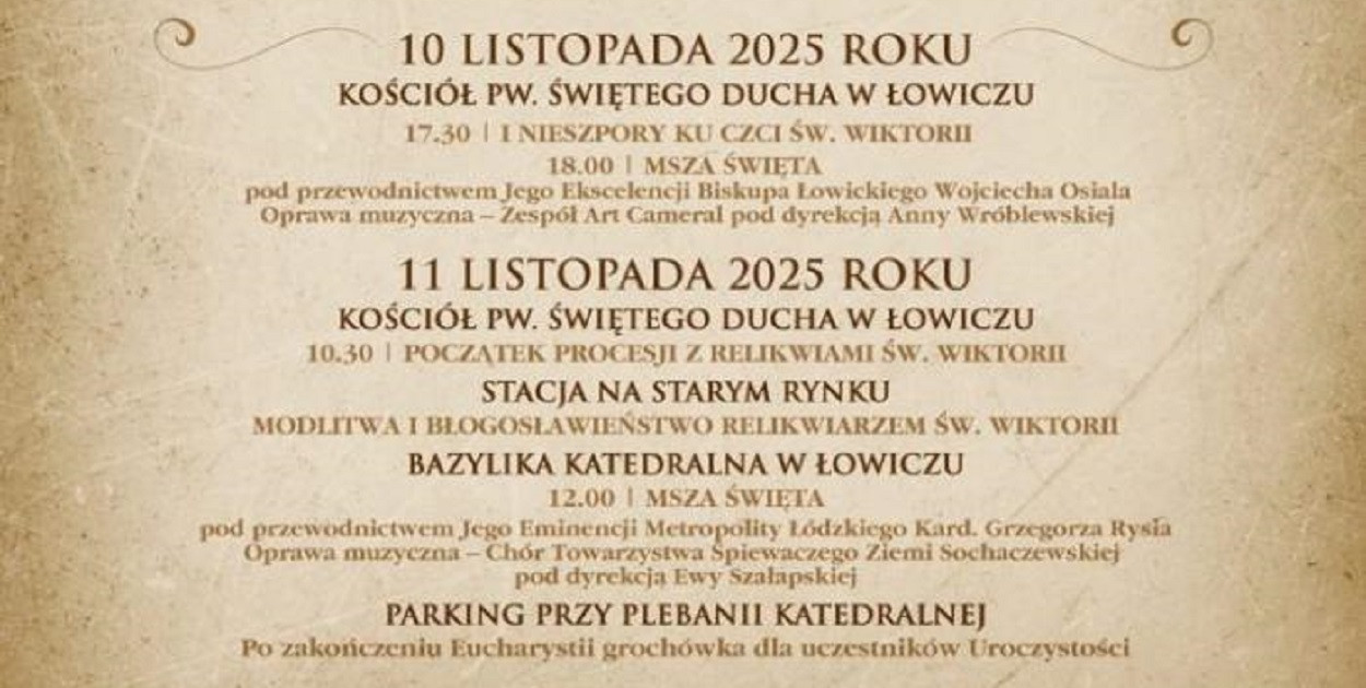 Rozpoczęcie uroczystości w kościele Świętego Ducha w Łowiczu, procesja ulicami Łowicza, modlitwa za Ojczyznę na Starym Rynku, msza święta w Bazylice katedralnej w Łowiczu.