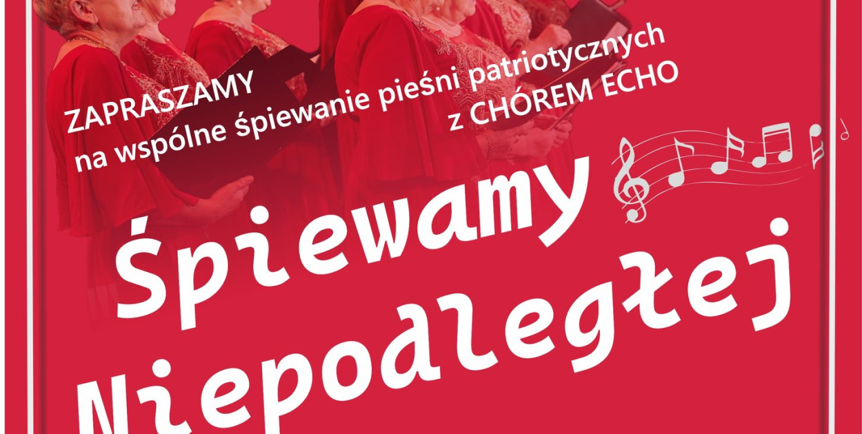 Instruktor Chóru Echo, pan Marek Nowicki wraz z członkiniami przygotowali teksty pieśni na rzutnik, a aktor Teatru Zwierciadło Krzysztof Kaczmarek zapewni artystyczną oprawę całości. Warto śpiewać Niepodległej - zapraszamy, nie może Ciebie zabraknąć!