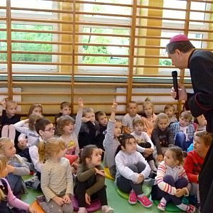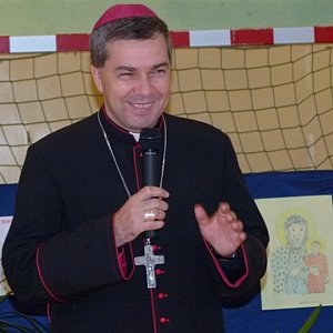 - Bardzo cieszę się, że mogę być w Waszej szkole. Dziękuję za przekazaną nam tu dzisiaj treść o Matce Bożej, bo to właśnie dzieciom objawiała się ona bardzo często. To piękny znak, że Matka Boża szuka dzieci i chce poprzez dzieci do nas przemawiać - mówił bp Wojciech Osial.