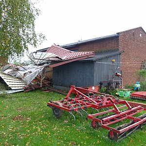 W kilku przypadkach zgłoszono mniejsze uszkodzenia poszycia dachów domów i budynków gospodarczych.