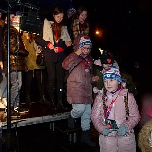 Mimo padającego deszczu w czasie wieczornej imprezy z okazji 27 Finału Wielkiej Orkiestry Świątecznej Pomocy plac Łukasińskiego w Strykowie zapełnił się ludźmi.