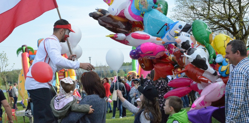 Ośrodek Sportu i Rekreacji w Strykowie przygotował wiele atrakcji, pośród których znalazły się m.in. dmuchańce i strefa zabaw dla dzieci, kącik plastyczny, animacje, fotobudka i szczudlarz rozdający biało-czerwone balony.